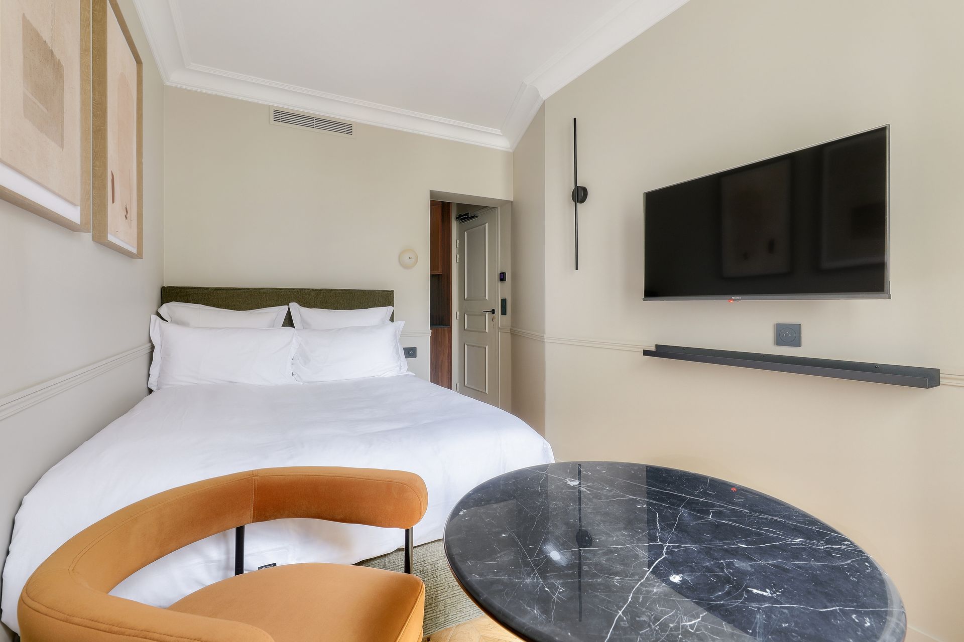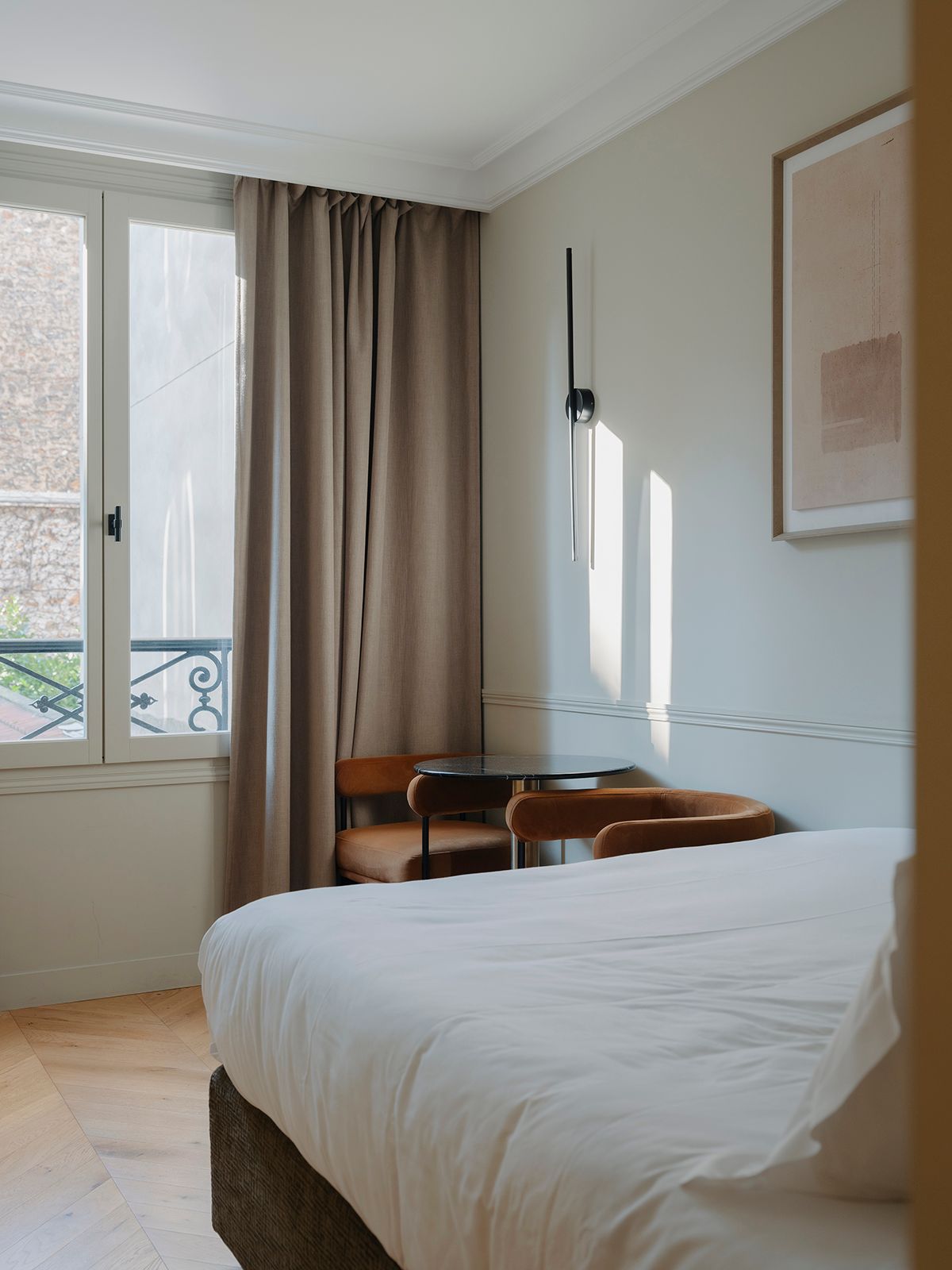Chaque détail de la Chambre Classique a été soigneusement pensé pour maximiser le confort et l'esthétique. Un petit espace de travail vous attend, offrant le lieu idéal pour lire, travailler, ou planifier votre journée, alliant utilité et élégance dans un cadre intime.