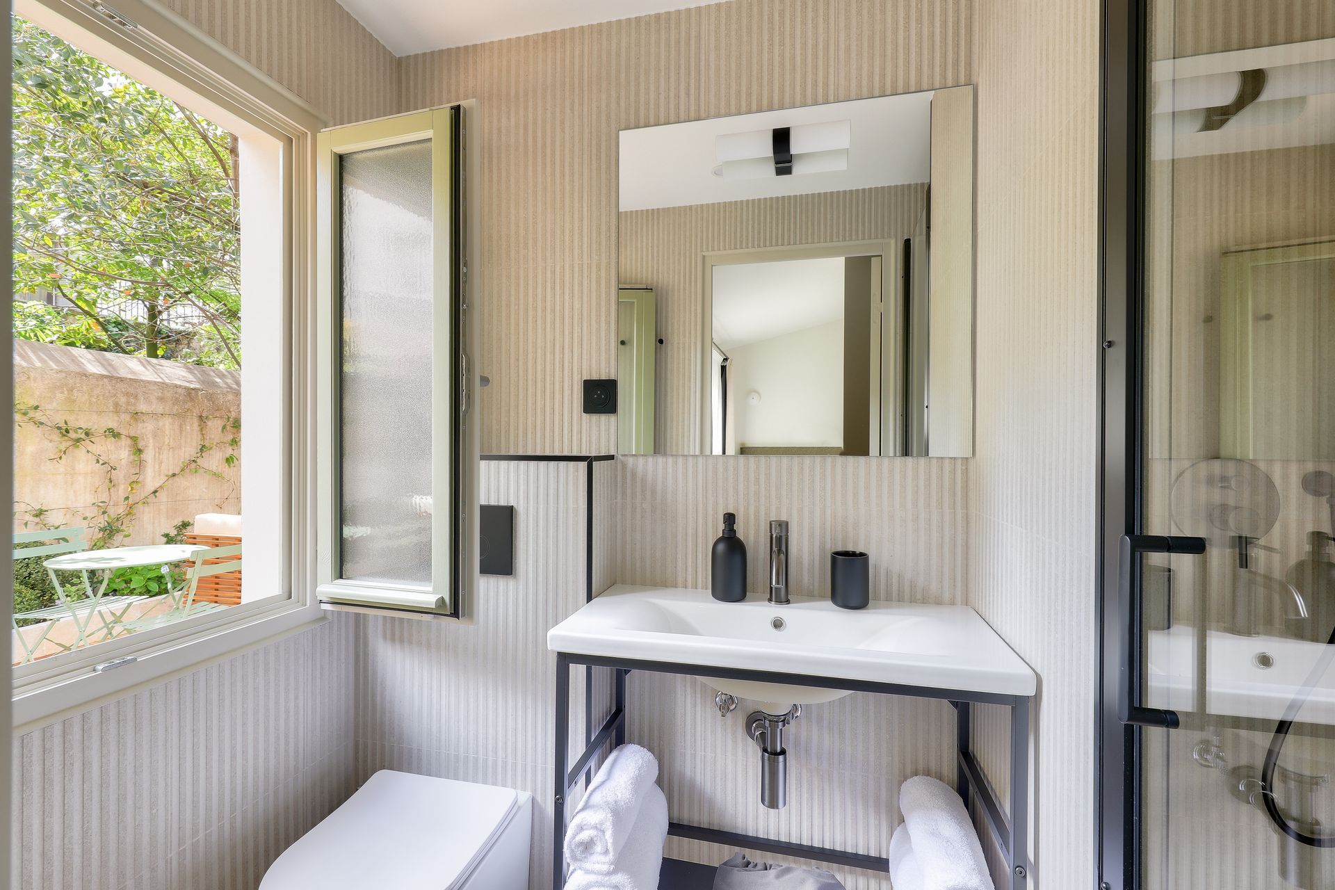 Les Chambres Jardin de Maison du Moulin Vert, offrent une vue sur notre magnifique jardin intérieur et vous donne l'impression d'être à la campagne en plein Paris. L'espace est conçu pour accueillir deux personnes, dans un cadre rare au coeur de Paris.