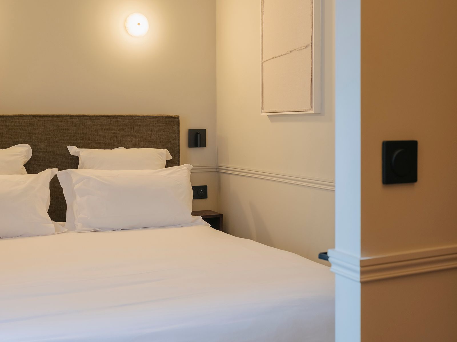 Chaque détail de la Chambre Jardin a été pensé pour offrir confort et tranquillité. Un petit espace de travail vous attend, offrant le lieu idéal pour lire, écrire, ou planifier votre journée, alliant utilité et élégance dans un cadre intime.